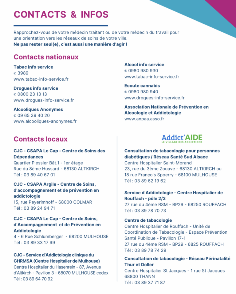 • Possibilité d’organiser en entreprise des sensibilisations aux pratiques addictives dans le cadre d’une démarche de prévention.